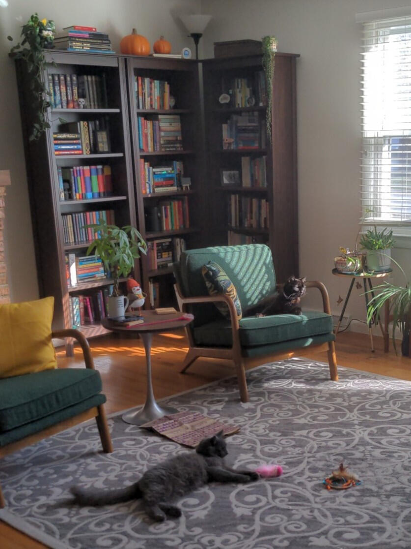On Halloween, Steve finally caved in to Sam's insistence that they needed a second cat to fill the second of two matching chairs in their living room and they brought home NĂºmenor.